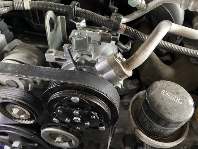 プーリーはA/CのON/OFFに関わらず、エンジンがかかっている間はベルトによって常に強制的に回されています。