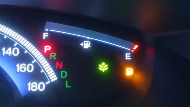 車の運転中、ふとメーターパネルに目をやるとガソリンランプが…。